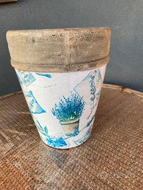 Vaso in terracotta con decoro lavanda originale provenzale. Dimensioni: diametro cm 18 Altezza cm 22