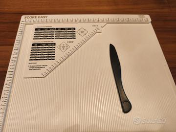 Utilizza la tavola di cordonatura per progetti di scrapbooking e journaling. L’area di lavoro di 30,5 x 30,5 cm presenta indicazioni chiare delle dimensioni in centimetri. Grazie ai due lati aperti, puoi lavorare facilmente con carte di diversi formati, dal formato scrapbook all’A4. Il righello triangolare e il stecca d’osso inclusi rendono semplice la creazione di scatole regalo, biglietti di auguri e altri progetti di paper crafting. Dopo l’uso, puoi riporre comodamente gli accessori sul retro della plancia.
