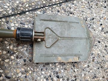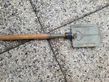 vanghetta con snodo per richiuderla, con manico in legno, per usi di diverso tipo come il giardinaggio o da tenere in auto come da me usata per il fuoristrada