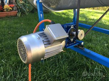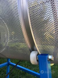 Vaglio rotante motorizzato, setaccio completo di cavalletto di sostegno, con ruote per la rotazione del cestello.