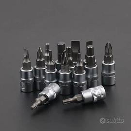 Nr.1 Valigia in plastica Nr.1 Chiave a cricchetto reversibile attacco 1/2" Nr.18 Sockets 1/2 " Bussole per bulloni esagonali da 8 (5/16)-10-11-12-13-14-15-16-17-18-19-20-21-22-24-27-30-32 mm Nr.6 Deep Sockets 1/2 " bussole lunghe per bulloni esagonali da 14-15-16-17-19-22mm Nr.8 Sockets 1/2 " Bussole a stella da E10-11-12-14-16-18-20-24mm Nr.1 Socket attacco bullone 21mm e attacco chiave 13/16 Nr.1 Prolunga snodabile 1/2" Nr.1 Prolunga 120mm da 1/2" Nr.2 Adattatore 3 vie Nr.1 Chiave a cricchetto reversibile attacco 1/4" Nr.1 Prolunga snodabile 1/4" Nr.1 Cacciavite con attacco 1/4" Nr.35 Punte vari per cacciavite attacco 1/4" Nr.1 Prolunga 50mm da 1/4" Nr.1 Prolunga 70mm da 1/4" Nr.13 Sockets 1/4 " Bussole esagonali da 4-4.5-5-5.5-6-7-8-9-10-11-12-13-14mm Nr.8 Deep Sockets 1/4 " bussole lunghe per bulloni esagonali da 6-7-8-9-10-11-12-13-mm Nr.5 Sockets 1/4 " Bussole a stella da E4-5-6-7-8mm Nr.3 Chiavini esagonali 1.5-2,2-2,5mm