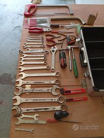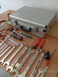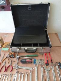 Valigetta in alluminio: Con scomparti interni regolabili e pannello portautensili nel coperchio. Set di chiavi: Include chiavi combinate, chiavi fisse e chiavi inglesi (regolabili) di diverse misure. Pinze e tronchesi: Diversi tipi di pinze per afferrare, tagliare o piegare materiali. Strumenti da taglio: Un seghetto per metalli e dei taglierini (cutter). Strumenti di misura: Un metro a nastro avvolgibile. Altri accessori: Cacciaviti, lime, set di punte da trapano e una mazzuola.