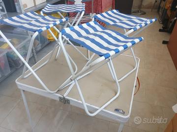 Cedo tavolo + 4 sgabelli per il pic nic anni 70 in eccellenti condizioni.Il tavolo con gli sgabelli formano una valigia molto pratica per essere trasportata.Chiedo euro 50 trattabili