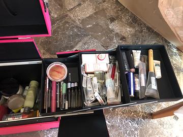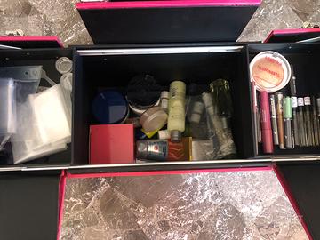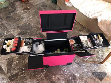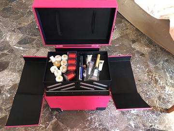 Valigia professionale ESTETISTA/PARUCCHIERA rosa acceso misure 50x37x24 con maniglia superiore e anteriore ruote e 6 scomparti interni piu uno centrale profondo (il contenuto e a scopo dimostrativo non compreso).