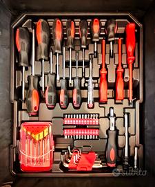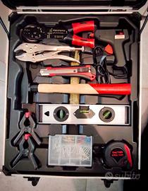 valigia trolley praticamente nuova, con ruote, mai usata, piena di tutti gli attrezzi che vedete in foto; ne ho solo provati un paio, ma quasi tutti mai tirati fuori. vendo per inutilizzo. Visto il peso non spedisco, consegna a mano a Roma.