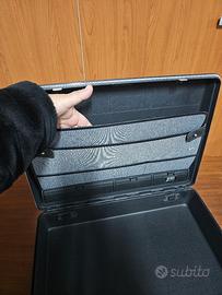 Valigia anni 90 Vintage. Delsey Visa. Con scomparti internamente. Tre scomparti con apertura a scatto. Altri scomparti rivestiti in tessuto come da foto. Misure