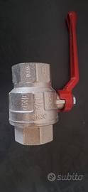 valvola a sfera in ottone nichelato per acqua o gas, con attacco da 1" 1/2 (un pollice e mezzo). Specifiche tecniche principali: