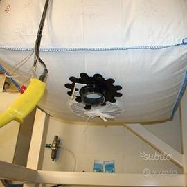 Valvola di scarico per sacconi big-bag progettata e sviluppata per facilitare il processo di svuotamento dei sacconi big-bag in modo controllato grazie alla valvola parzializzatrice e proboscide ad innesto per direzionare il flusso in caduta verso la direzione desiderata.