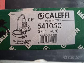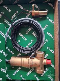 Valvola di intercettazione del combustibile CALEFFI cod. 541050. Corpo in ottone, attacchi filettati femmina 3/4". Lunghezza capillare 5 metri. Qualificata e tarata ISPESL: taratura 98°C. Nuova ancora nella sua scatola come si vede dalle foto.