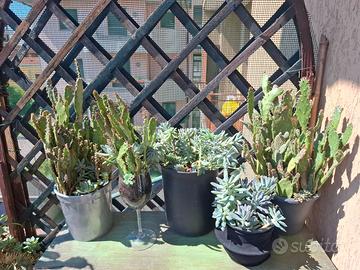 Vendo cactus Opuntia da fiore e altre piante grasse in vaso.