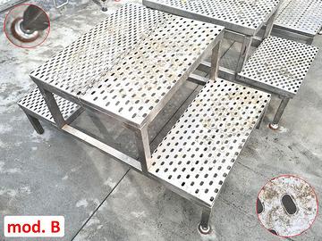 - mod. A 3 scalette a due gradini con piedini regolabili dim. 70X55cm h50cm, gradino 70X30cm h4cm - 180,00€ cad. iva esclusa