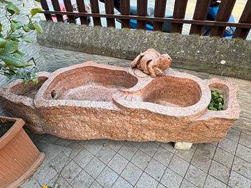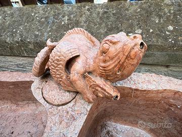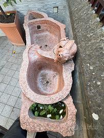 Vendesi vasca da giardino con pompa di ricircolo interno alla vasca (necessita di una presa di corrente 220V) Struttura lavorata in un unico blocco di marmo rosso di Verona (firmato dall’artista) levigata all’interno delle due vasche mentre all’esterno in rustico grezzo, sormontata da due mostri marini (sempre in marmo rosso di verona) dalla cui bocca fuoriesce lo zampillo di acqua di ricircolo. Trasporto a carico dell’acquirente.