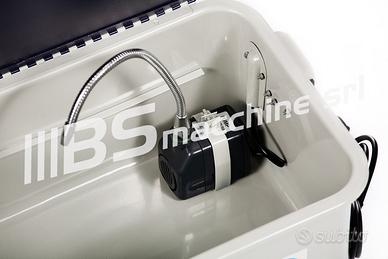 Coprende un ripiano forato per lo sgocciolamento del pezzo, asportabile per i pezzi da lavare più ingombranti, macchina realizzata in acciaio e verniciata a polvere epossidica per resistere a lungo nel tempo. È importante non usare gasolio, benzina e altri tipi di solventi all'interno della vasca per il lavaggio dei pezzi.