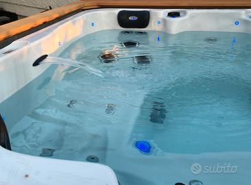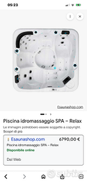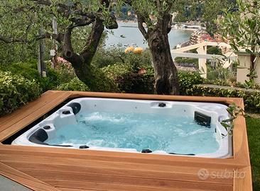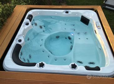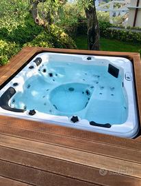 Modello RELAX: misura 2,04 x 2,04 x H.0,85.Totale bocchette idromassaggio 36,disinfezione Ozono,impianto di riscaldamento,copertura termica,cromoterapia a Led.Peso a vuoto 275 Kg e a pieno 1300 Kg.