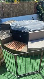 Vasca ideo octopus semi rigida con arredamento( divanetto cuscini e portaoggetti) motore tripla funzione: riscaldante, massaggio e filtarzione, 4/6 posti. Smontaggio e ritiro a carico dell’acquirente