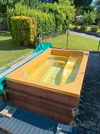 vendo vasca idromassaggio con riscaldamento acqua e programmi computerizzati , capacità 4/5 persone in vetroresina e prodotta in italia , con copertura artigianale , diversi accessori e prodotti per l'acqua . Per il trasporto occorre autogrù perchè monoblocco e pesante .