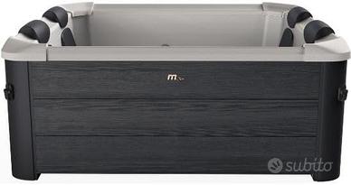Si tratta di una spa con pareti rigide Aero™ alleggerite, formate da pannelli rinforzati ultraleggeri con effetto legno di colore grigio, con telo vasca “liner” in PVC , pensata per unire il comfort di una Spa tradizionale alla praticità e semplicità di installazione ( completamente smontabile e trasportabile ) che sono caratteristiche intrinseche del marchio MSPA.