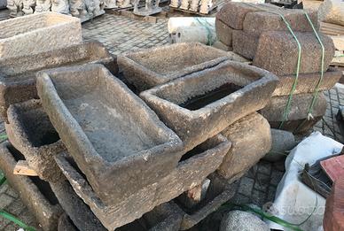Vecchie mangiatoie in pietra lavica nera. Si usano anche per arredare giardino zen, laghetto koi.