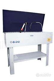 Macchina realizzata in acciaio e verniciata a polvere epossidica per resistere a lungo nel tempo. È importante non usare gasolio, benzina e altri tipi di solventi all'interno della vasca per il lavaggio dei pezzi.