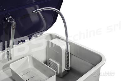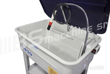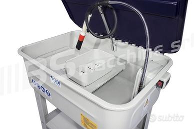 Macchina realizzata in acciaio e verniciata a polvere epossidica per resistere a lungo nel tempo. È importante non usare gasolio, benzina e altri tipi di solventi all'interno della vasca per il lavaggio dei pezzi.