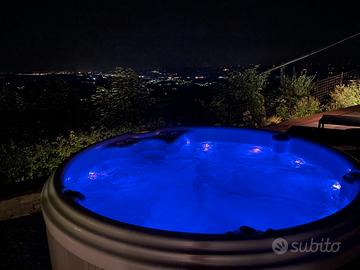 Minipiscina HAFRO, 7 anni, unico proprietario, perfettamente funzionante, 1000 litri di acqua, 6 postazioni ergonomiche, sistema di filtraggio a cartuccia, cromoterapia, riscaldabile, casse acustiche incorporate con sistema bluetooth, copertura invernale.