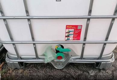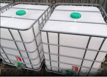 Vendesi cisterna / contenitore / vascone da mille litri ideale per irrigazione orti o giardini, abbeveramento animali. Graduata sul fianco, protetta da gabbia di metallo e completa di rubinetto. Ottima per raccolta acqua piovana o qualsiasi altro liquido, come gasolio ecc. Nuova. Prezzo 120 Euro l'una.