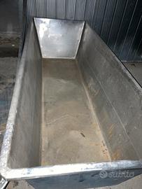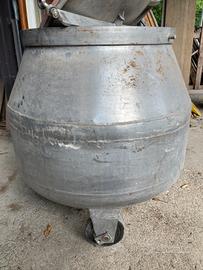 Vendo per inutilizzo. Botti acciaio inox spessore 11 mm con dimensioni diametro 80 cm altezza circa (sotto hanno le ruote) cm 56 al netto ruote- contengono circa 280 litri. Vasche inox circa 2 mt x 80 cm 2 con buco scolo 2 senza e vasca alluminio più piccola misure in foto. Esempio di botte trasformata tipo griglia weber