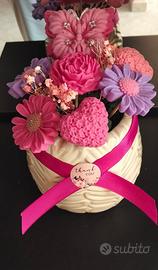 Vendo vasetti ceramica con fiori di cera colorati, per abbellimento casa , 17 euro l'uno