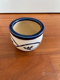 Vasetto in coccio porta piante con una splendida decorazione blu. Diam 11,5 cm. disponibile solo per la spedizione, no consegna a mano.