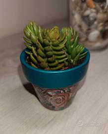 Vasetto in terracotta decorato a mano + talea di Borracina biancastra🪴🌺 Altezza vasetto: 5,5cm