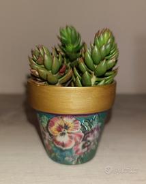 Vasetto in terracotta decorato a mano + talea di Borracina biancastra🪴🌸 Altezza vasetto: 5,5cm