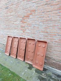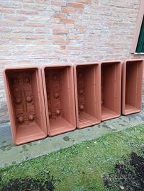Vendo 5 vasi in materiale plastico lunghi 100 cm , sistema drenaggio acqua integro, con sottovasi , da esterno, ottimamente tenuti.
