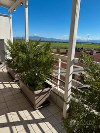 4 vasi H40 x L100 cm, due con sottovaso e due senza , in tutti e quattro i vasi ci sono 2 piante di cipresso da aiula .