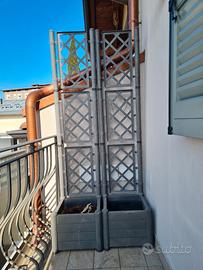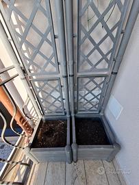 Vasi da esterno 40x40cm con spalliera che funge da separé o per fissare fiori e piante rampicanti. vasi, fiori, fioriere, rampicanti, giardino, balcone, esterno, piante.