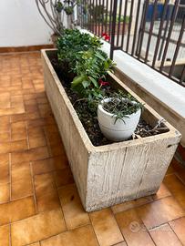 Vendo 3 vasi da giardino in cemento effetto legno . Uno quadrato e due rettangolari.