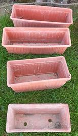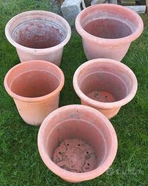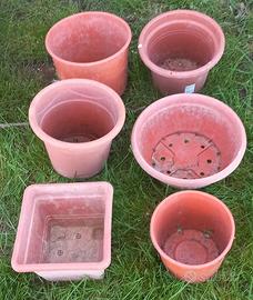Come da foto, 22 vasi da giardino varie misure e come da foto : La foto numero 2 vede 6 vasi rotondi con misure da 40 diametro e 32 altezza. La foto numero 3 è fatta di 6 vasi rotondi aventi misura da 47 diametro a 42 altezza. La foto numero 4 mostra 4 vasi rettangolari con misure dai 48x18x17 al più piccolo 35x15x14. La foto numero 5 mostra 5 vasi rotondi grandezza medio-piccola. L'ultima foto mostra 2 vasi grandi rettangolari da 1 metro x 40 x 40. I prezzi variano a seconda della misura e di quanti ne venite a prendere, i 2 vasi grandi rettangolari li do via a 10€ cadauno... Prendo in considerazione solo contatti telefonici; non rispondo a messaggi. 347 63 900 16 Massimiliano