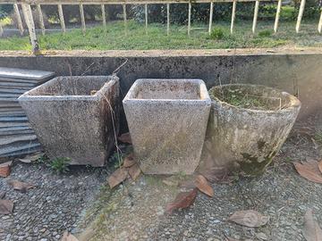 n. 5 vasi da giardino in graniglia, integri, da grattare e verniciare, solo ritiro, possibilità di prenderne anche solo qualcuno, euro 10 al pezzo