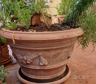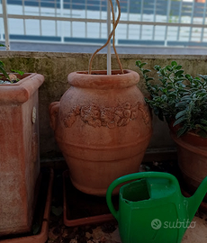 Vasi terracotta in perfetto stato, vendo per mancanza di spazio. Non posso spedirli, visionabili dal vivo. Dimensioni generiche: Quello quadrato: 50X50 X H 70 cm circa; Orci: H 72 cm, larghezza circa 55 cm; Vaso grande 42 cm H, e 60 cm diametro. Prezzi da 150 a 200 euro cadauno.