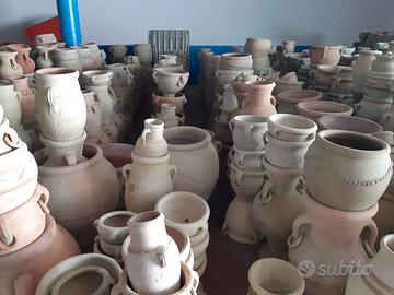 Vasi e anfore artigianali di terra cotta e possibilità realizzazione piedi in ferro battuto su richiesta