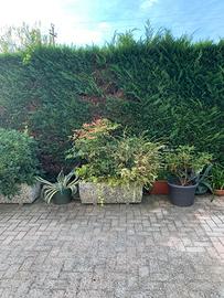 n. 5 vasi da esterno in cemento completi di piante ornamentali per esterno
