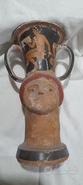 N.2 vasi con figure elleniche realizzati interamente a mano sia nella foggiatura che nella decorazione ed imitazione archeologiche. Brocche bifronti uomo- donna.