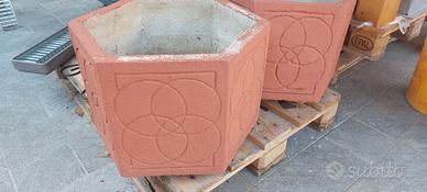 n. 2 Vasi in cemento colorati da giardino per esterno o per interno Dimensioni: 48 cm misura minima da lato a lato x 55 cm misura massima da spigolo a spigolo x 36 cm altezza. Ottimamente conservati. Richiesta 48 euro l'uno. Non si effettuano spedizioni.
