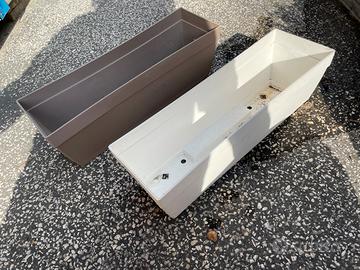 Vendo vasi, fioriere cassette resina bianco e tortora con riserva d'acqua. Misure: cm30x12x12h, cm40x12x12h. Nuove mai utilizzate. Possibilità di spedizione in tutta Italia, spese di spedizione da concordare in base al quantitativo. Contattare tramite email per qualsiasi richiesta di informazioni.