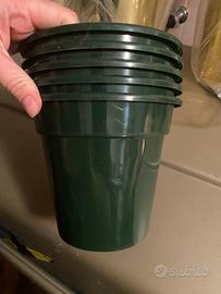 Vasi per fiori in plastica di diverse misure e colori da €1,50 e €2,50.