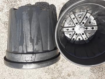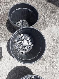 N°5 vasi in plastica dura con diametro di 40cm e altezza 34 cm. Perfetto il sistema di drenaggio con fori e piedini rialzati. Il bordo ha una conformazione tale da rendere facile la presa in caso di spostamento. Sono praticamente nuovi.
