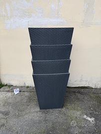 Vasi in plastica neri intrecciati per esterno