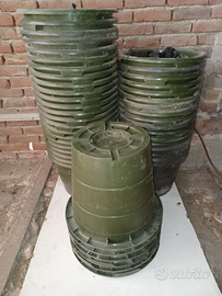 Vendesi vasi di ottima qualità x esterno, in pvc nuovi, in plastica morbida e spessa color verde.