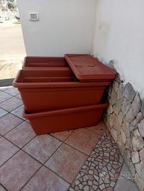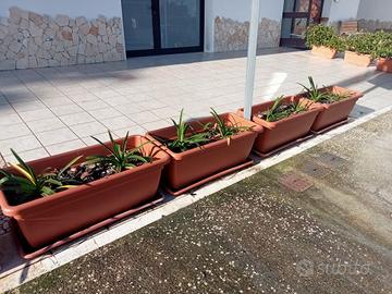 N.8 VASI IN PVC COPLETI DI SOTTOVASO LUNGHI 1MT + 5 VASI DA 80 CM LUNGHI IN PVC DOPPIO, DECORATO IN RILIEVO, PER UN TOTALE DI 13 PEZZI IN TUTTO