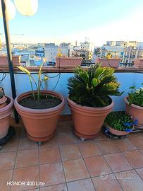 VASI CON 8 PIANTE DI STRELITZIE, 2 CYCAS, 1 MELOGRANO E 3 VASI IN SEMINA.