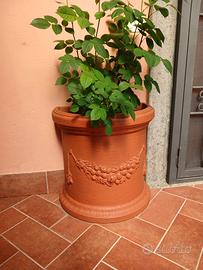 Eleganti Vasi Festonato in Resina Effetto Terracotta Vendo splendida coppia di vasi in resina "festonato" dalla forma a muro (mezzaluna), ideale per ottimizzare lo spazio su balconi e terrazzi. Classico toscano con decoro a ghirlanda (festone). Super-resina di alta qualità, leggera da spostare e indistruttibile. Resiste al gelo, ai raggi UV e agli urti. Non sbiadisce nel tempo. Perfetto per piante ornamentali sia in esterno che in interno. Ottime condizioni, come nuovo. 55 X 45 Vendo in coppia No spedizione Visibile Monterosi Vt € 70 la coppia ________________________________________